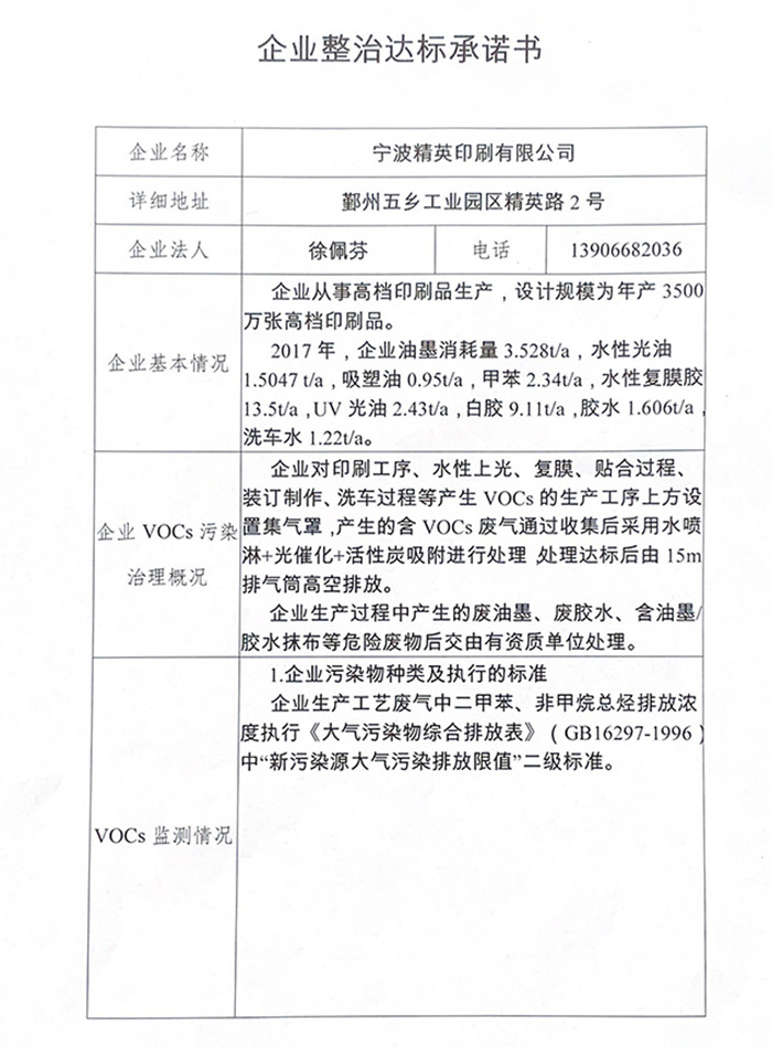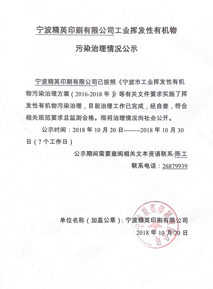 工業(yè)揮發(fā)性有機(jī)物污染治理情況告示